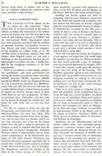 160 – Statement by the President Upon Signing the Refugee Relief Act of 1953.