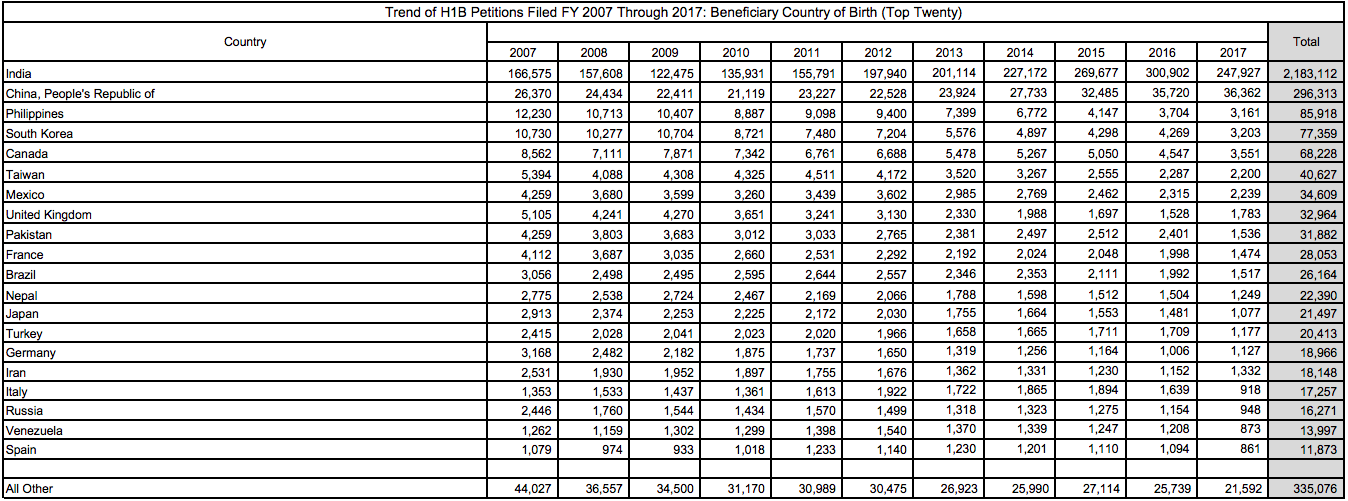 Presently, most H-1B recipients are Asians whose employment sponsors are in the computer and IT industries.